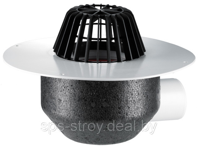 HL64P, Кровельная воронка с листвоуловителем, с теплоизоляцией, с корпусом из поливинилхлорида для приклейки ПВХ мембраны, с горизонтальным выпуском DN 110 или DN 75