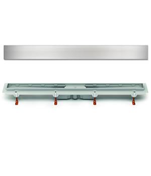 Душевой лоток MCH для свободного монтажа с кромкой из пластика и решеткой из высококачественной нержавеющей стали. Дизайн решетки Klasik.