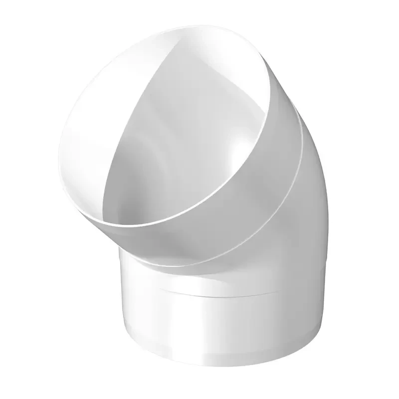 Колено 45 диаметром 125 мм для пластиковых воздуховодов используется в системе пластиковых воздуховодов для вентиляции. Отвод Ø100 пластиковый служит для соединения воздуховодов одного диаметра под углом 45º. Для приточной или вытяжной вентиляции различных помещений.