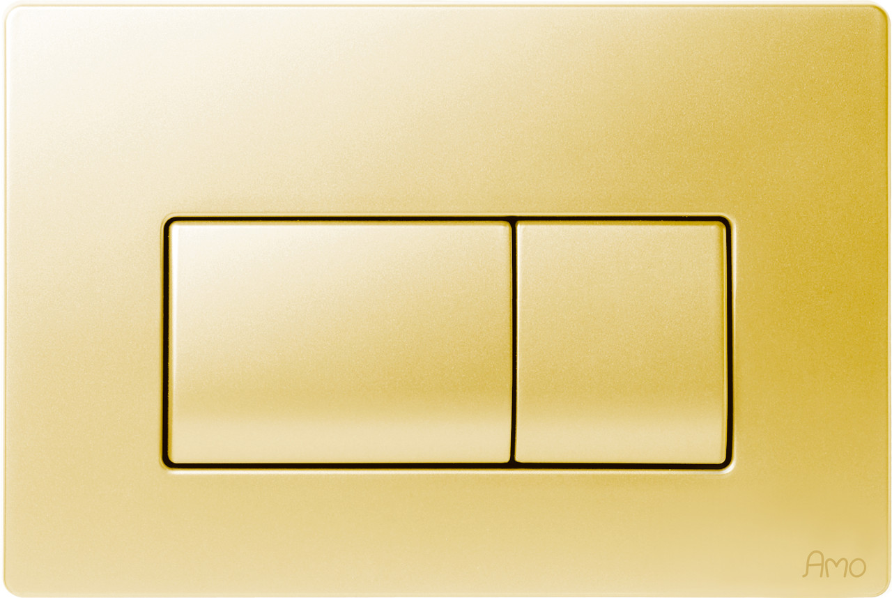 Панель смыва для инсталляций AMO. С 2-мя кнопками, большой и малый смыв. Дизайн Garda. Цвет золото матовый. Механика, подходит для всех механических инсталляций AMO. Материал ABS пластик.